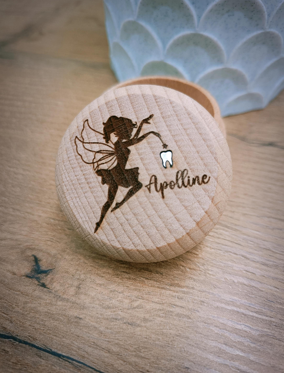 Boîte à Dent en Bois Personnalisée – "Ma Première Dent" avec Gravure et Silhouette Dent Argentée